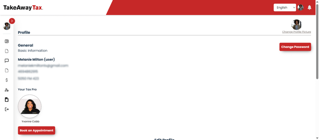 • View your tax professional’s name, email, and phone number.